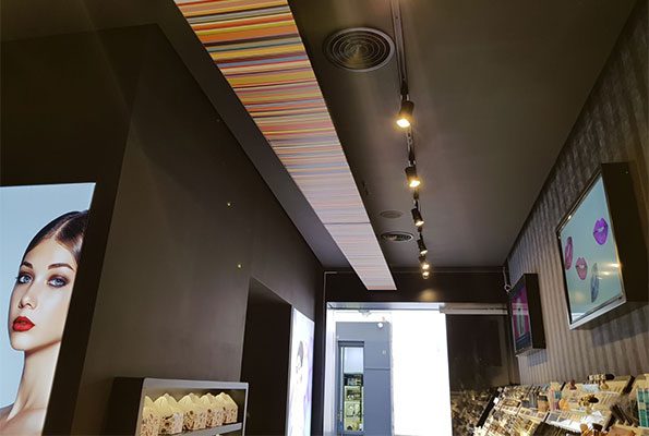 Portale in alluminio dibond Nero matt con traforatura laser e illuminazione.