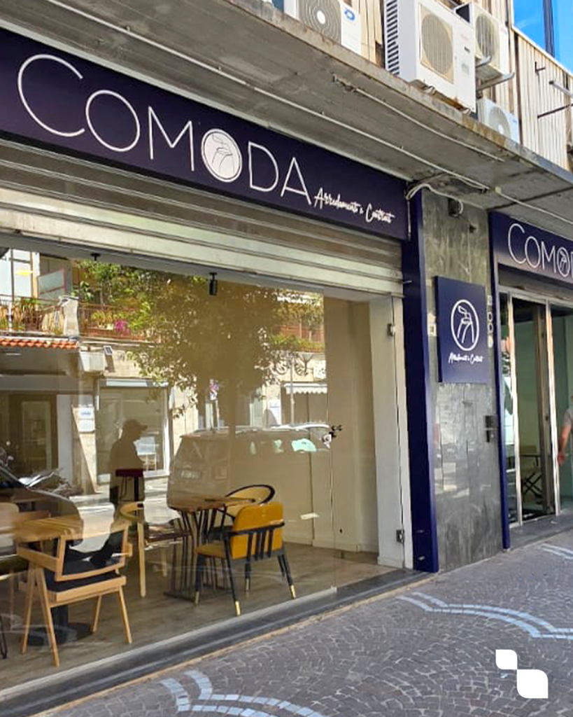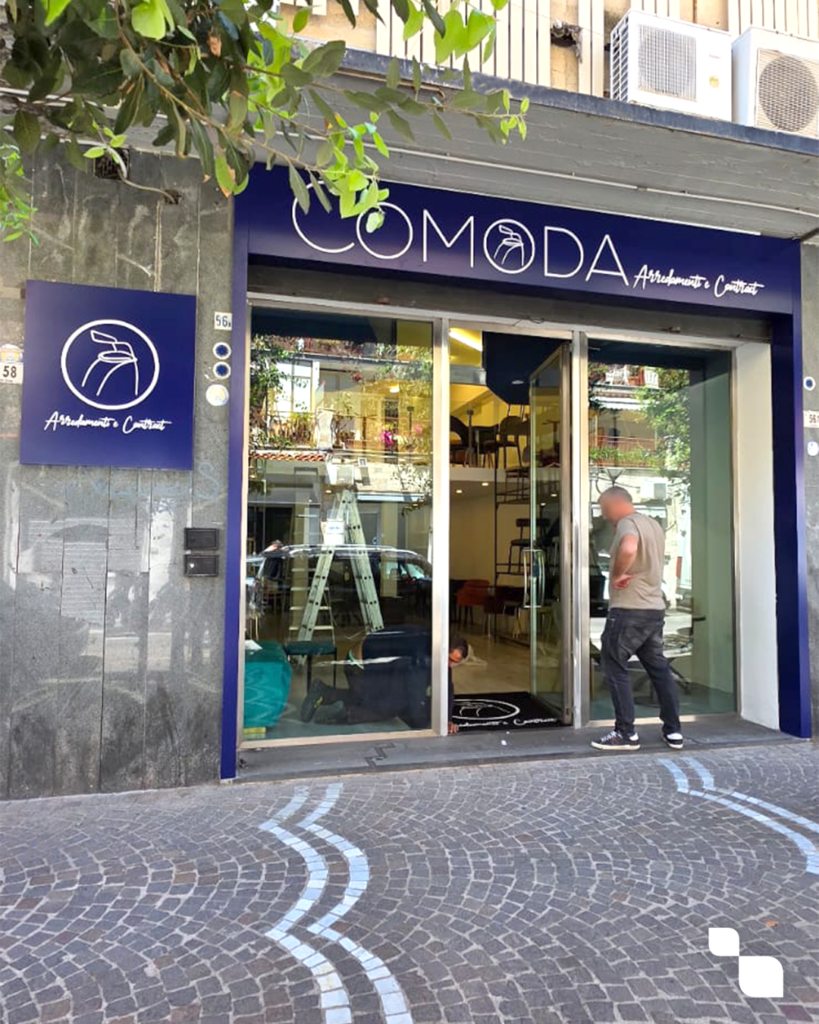 Per 𝗖𝗢𝗠𝗢𝗗𝗔 𝗜𝗧𝗔𝗟𝗜𝗔 – maestri di sedute e tavoli su misura – abbiamo creato un’insegna a portale in dibond e plex che racconta subito ciò che troverai all’interno del loro store: design, funzionalità e qualità Made in Italy. 🇮🇹✨😃