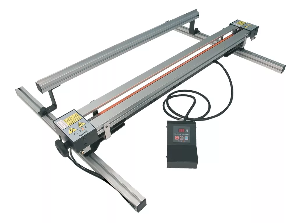 La termopiegatura del plex ed altri materiali plastici avviene tramite attrezzatura per il riscaldamento della Flexa, lungo una linea ben definita, che consente di ottenere delle pieghe nette e dritte con angolazione da 0 a 180° e senza la necessità di incisioni guida effettuata con la fresa.